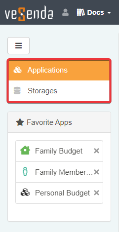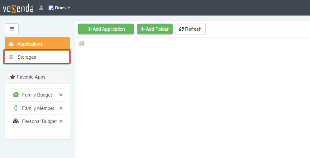 In case you have been assigned other permissions, you could see other tabs in the sidebar besides Storages and Applications.