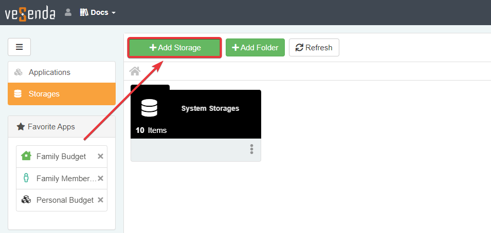 Click on the Add Storage button above the Storages panel.