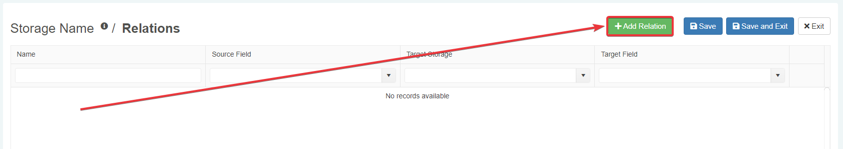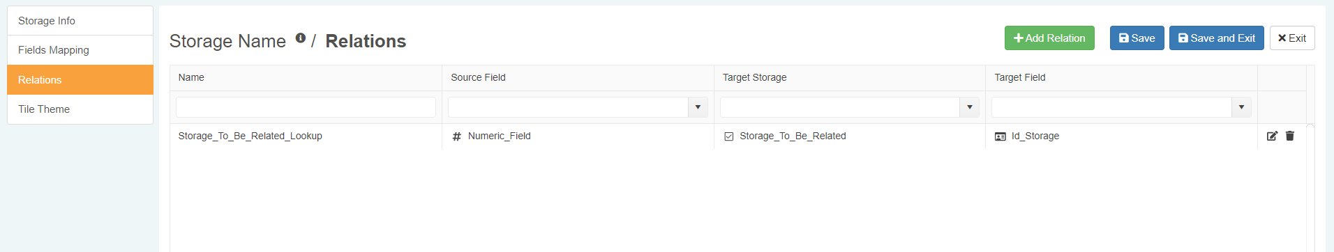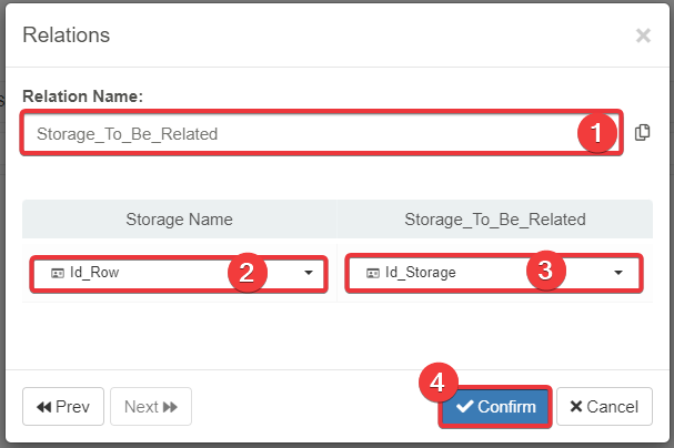 Follow the steps below to establish a Relation between a current Storage's field and a field on another Storage.
