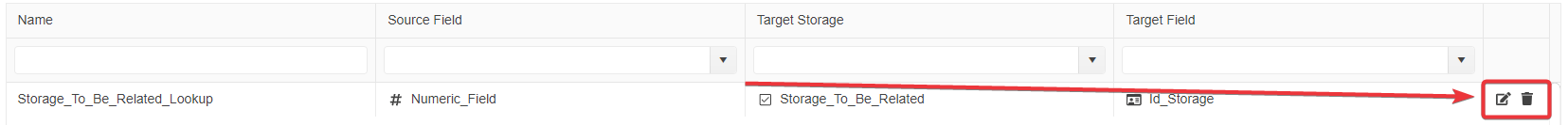 Click on the icon to delete the corresponding field from the Storage.