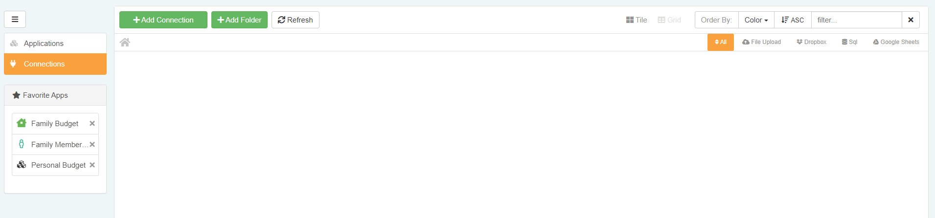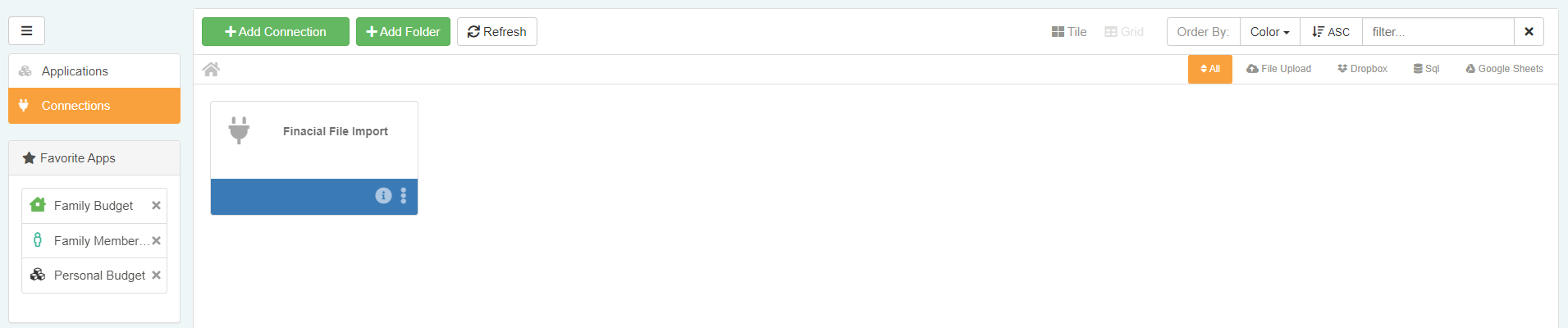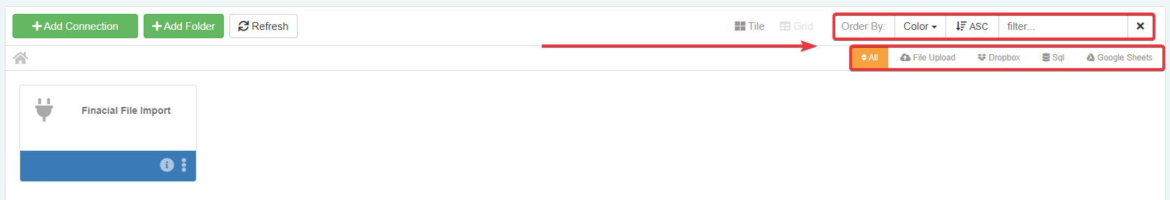 If you have multiple Connections, you can sort them and filter them by source type through the upper-left options in the Connections panels.