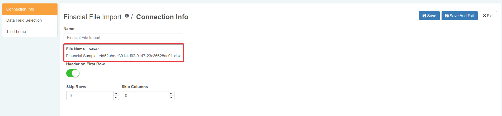 - (2) Header on the First Row: Turn on the toggle switch to use the first table's row as field's headers. By default, the toggle-switch is turned ON.