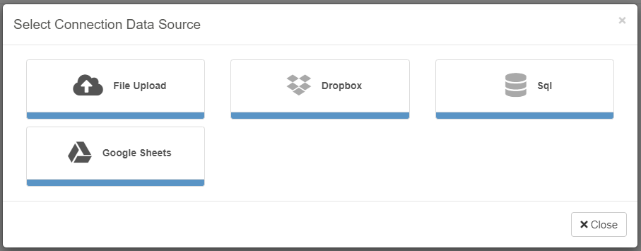 *.csv,*.xlsor*.xlsxfile from your machine. - Dropbox Retrieve a file containing the data from a Dropbox cloud.