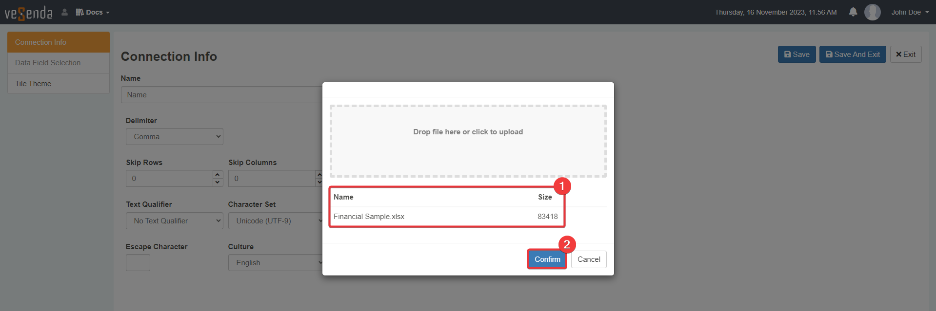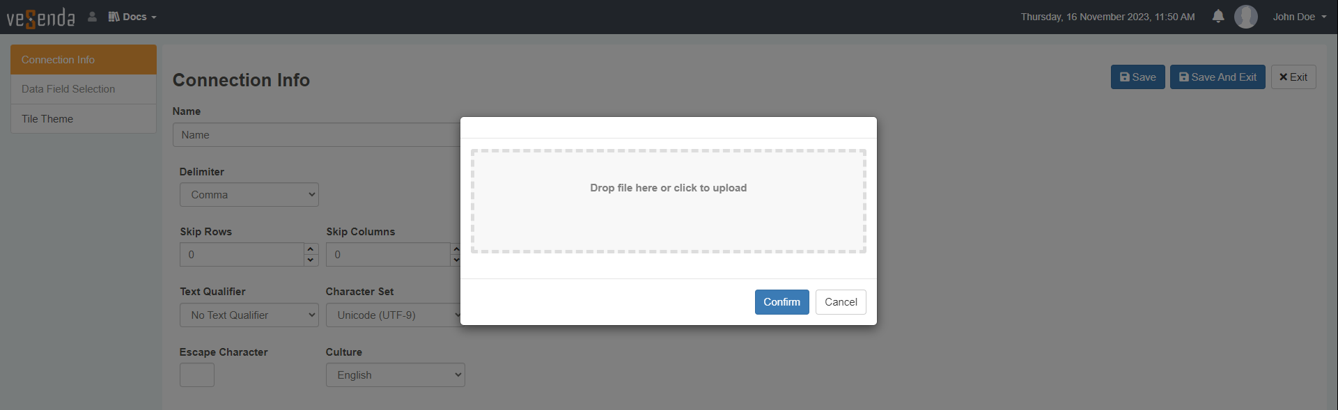 If you choose File Upload, a window asks to upload the file from your machine. Drag & Drop the file in the window.