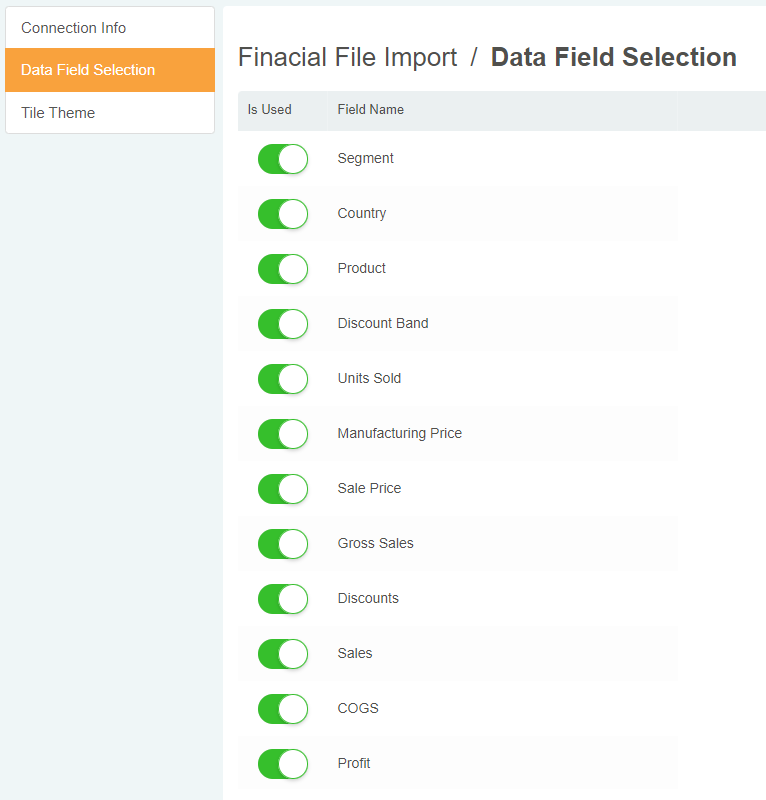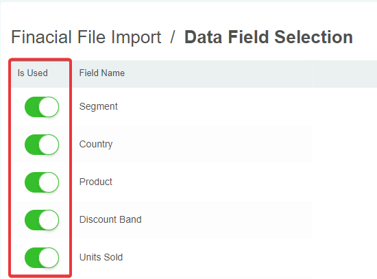 By default, the Is Used toggle-switch is enabled on all the fields.