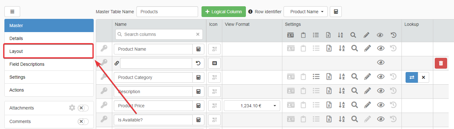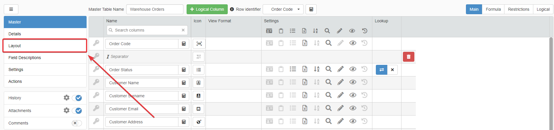 The process to configure a Formula to customize the table headers, cells, and rows' colors is the same for both Master and Detail tables.