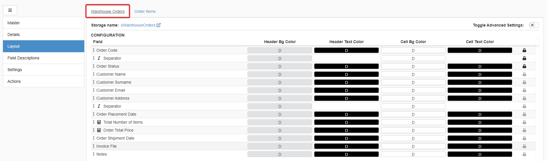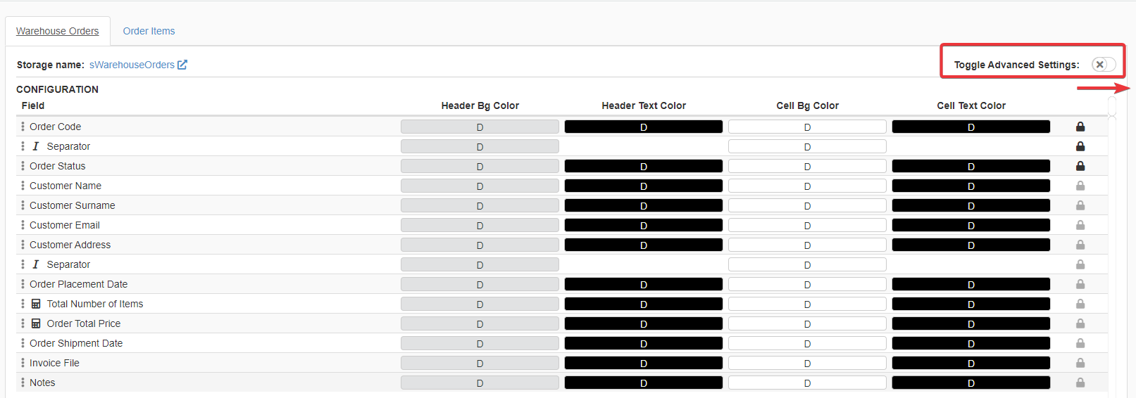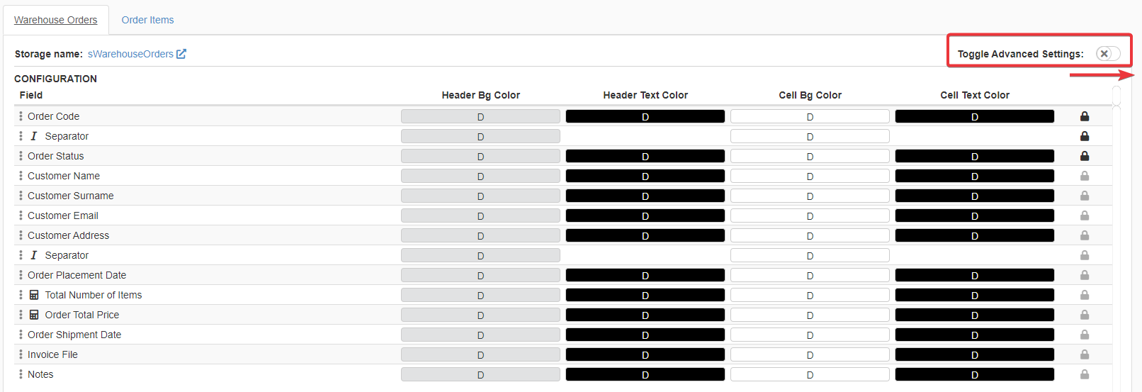 The Designer clicks on the Toggle Advanced Settings toggle-switch.