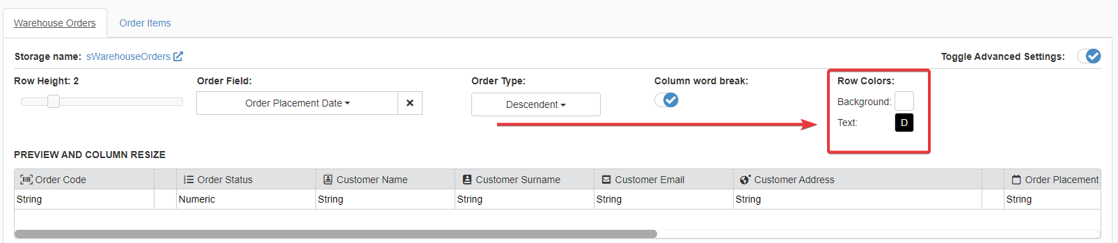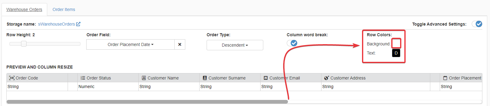 4. You find the buttons to insert the Formulas for the Row's background and text color under the Row Colors label.