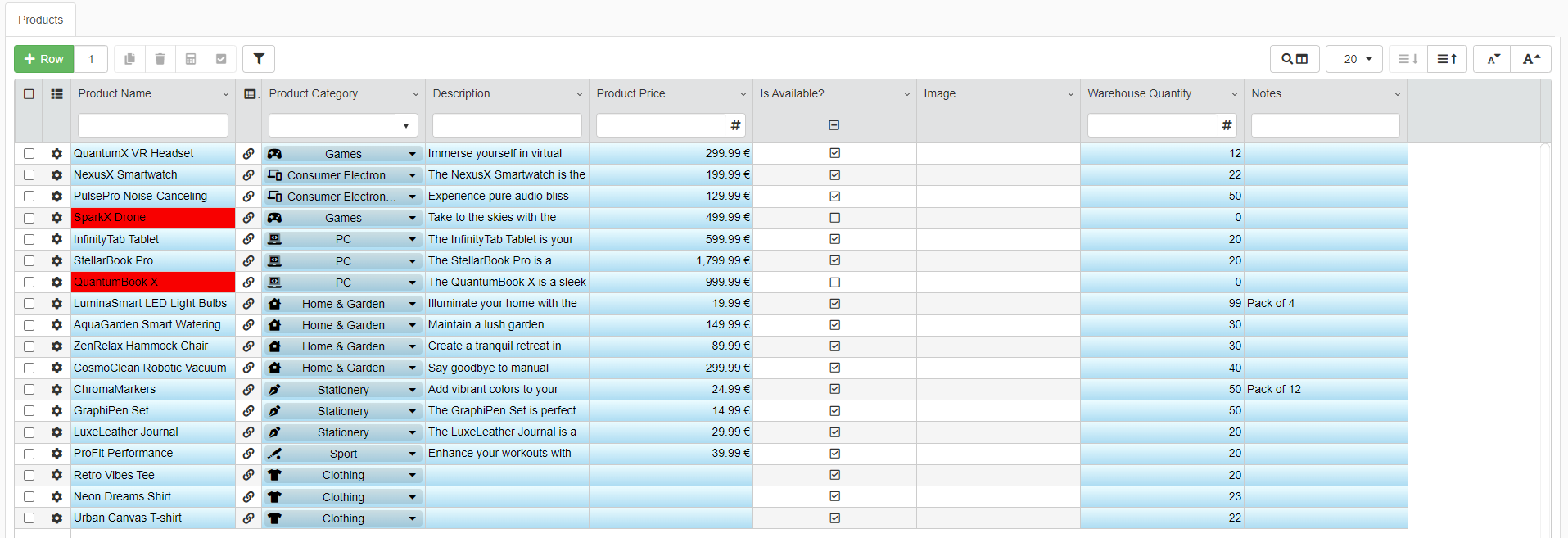 Now, the application highlights with red the field Product Name if the quantity is 0 and the item is out of stock.