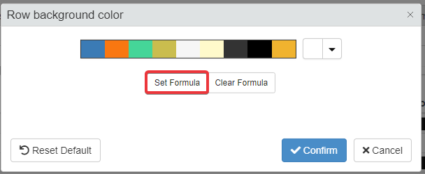 5. Click on the Set Formula button in either the Row background Color or Row foreground Color window (depends on the choice made at the previous step 4).
