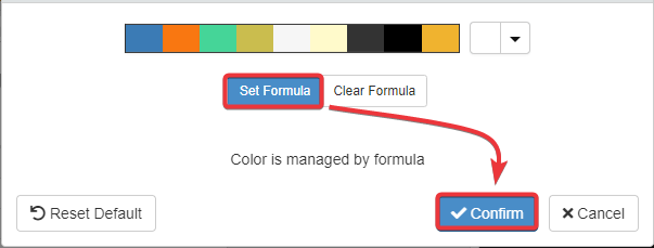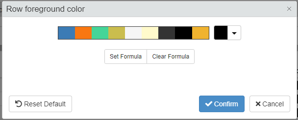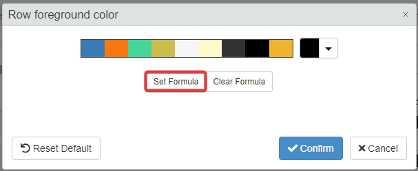 7. Once typed the formula, click on the Confirm button in either the Row background Color or Row foreground Color windows.