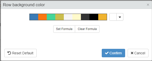 Click on the Background button to open the Row background Color window and insert a Formula for the row background. The inserted formula will manage rows' background color.