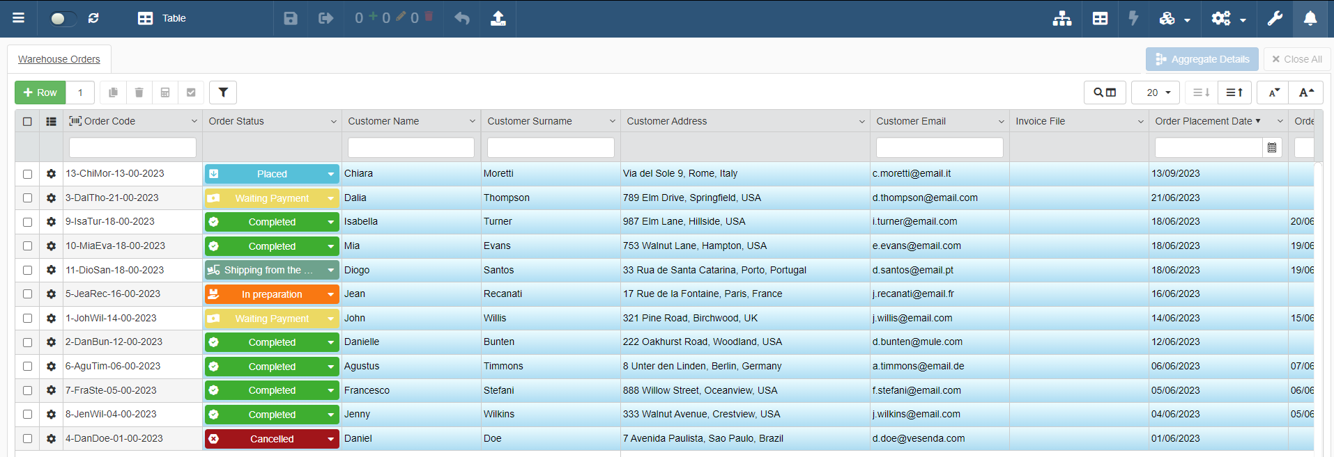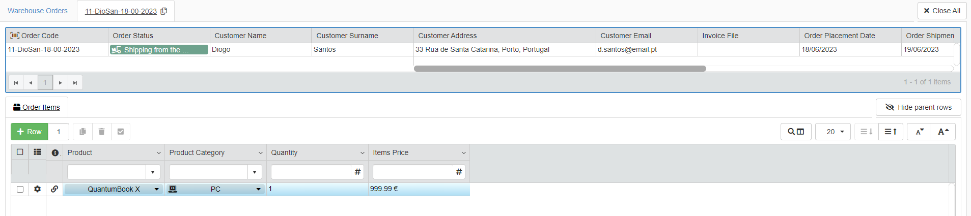 Each row on the Master table is an order. Each order has a Detail called Order Items (Check What are the Details? for more information about Details.)