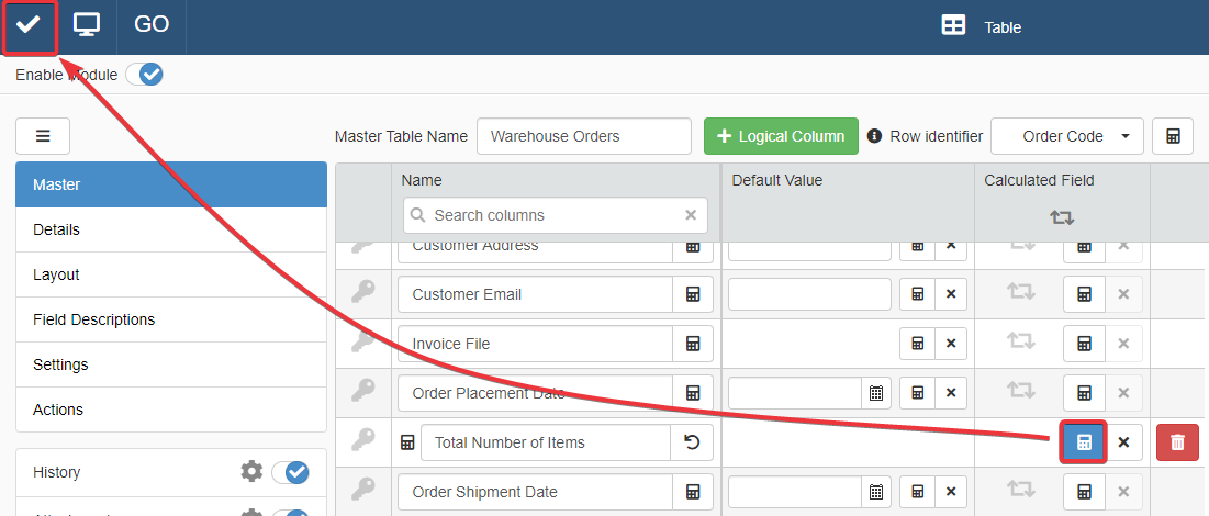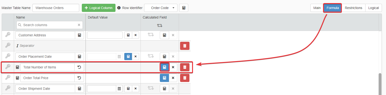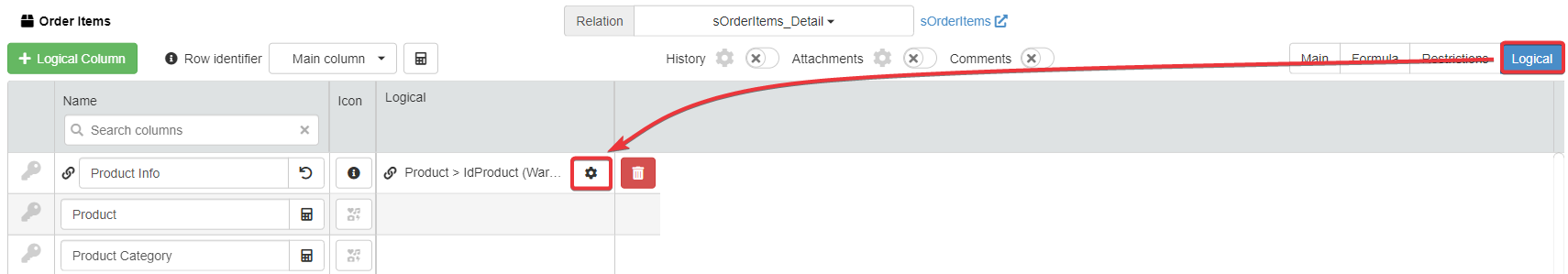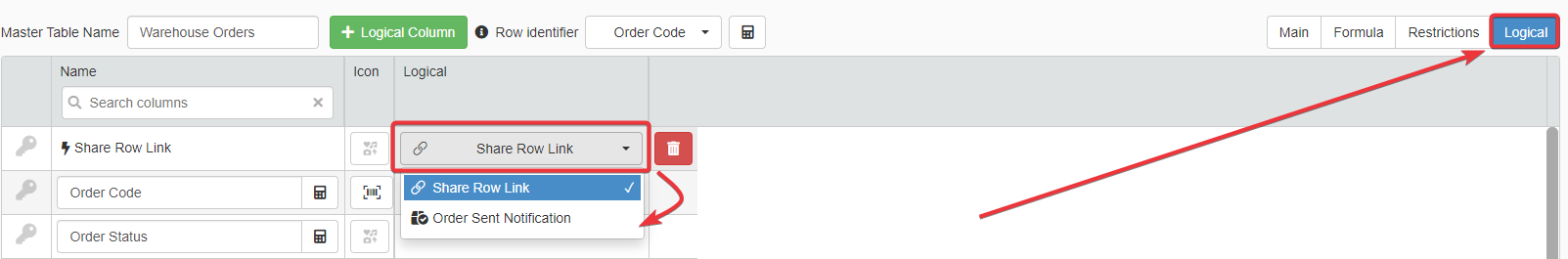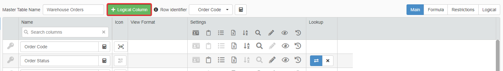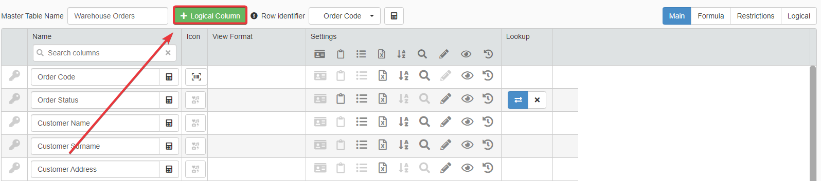 The Designer goes to the Master table settings and clicks on the Logical Column button.