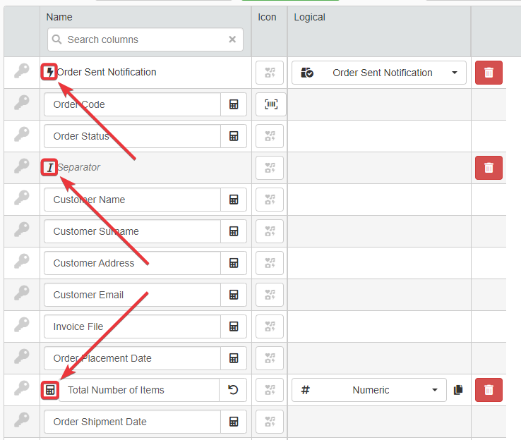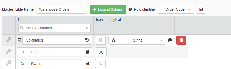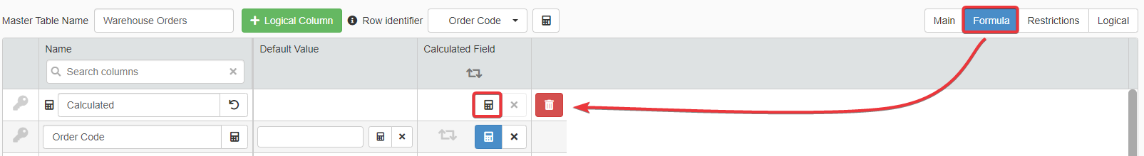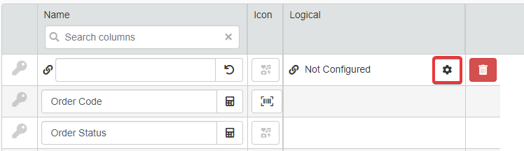 If you want to delete a Logical Column, click on the button in any table settings' sub-panel. You find the button next to Logical Column's row that you want to remove.