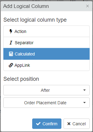 When you create a Logical Column, you will have to choose the type before proceeding with its configuration. (See How to Create and Configure a Logical Column to learn how to create and configure each type.)