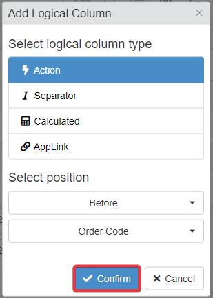 Click on Confirm button to save the configuration. (Click Cancel if you want to abort the Logical Column's creation.) If you confirm, you will land at the Logical table settings' sub-panel.