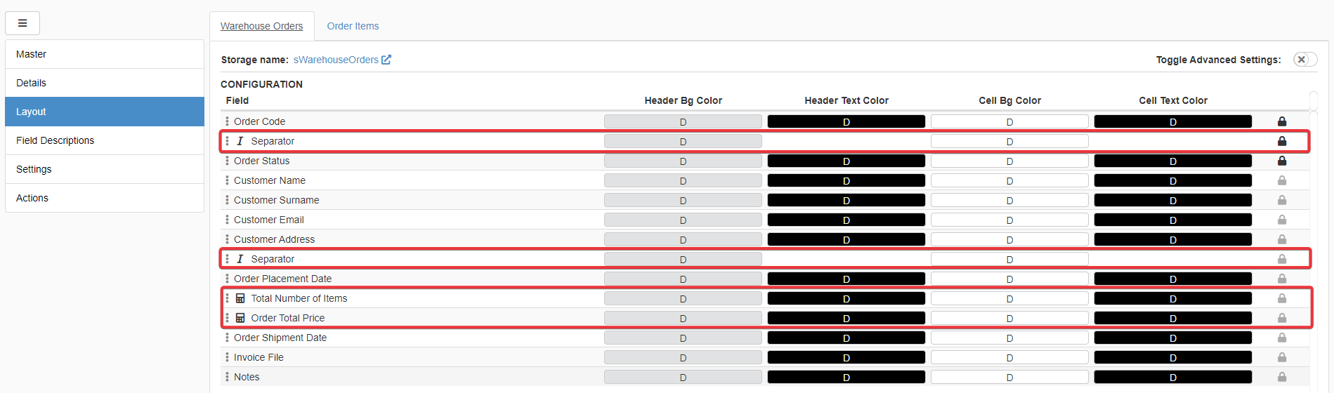 In the panel Layout, you can arrange and customize Logical Columns on a table like any other field column.