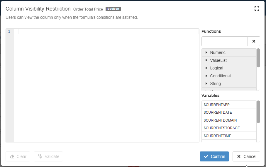 $$logicalColumnName) that you can paste in the Formula Editor.Warning
