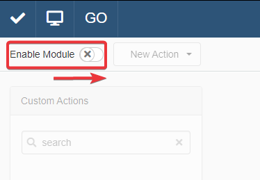 Click on the Enable Module toggle switch to activate the Custom Action panel in Design Mode.