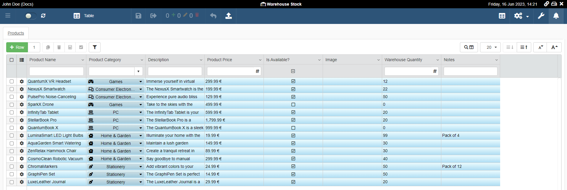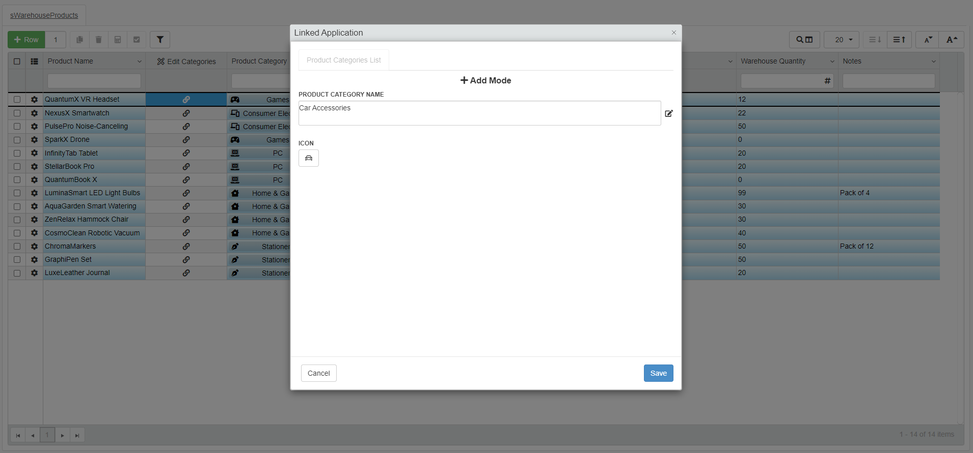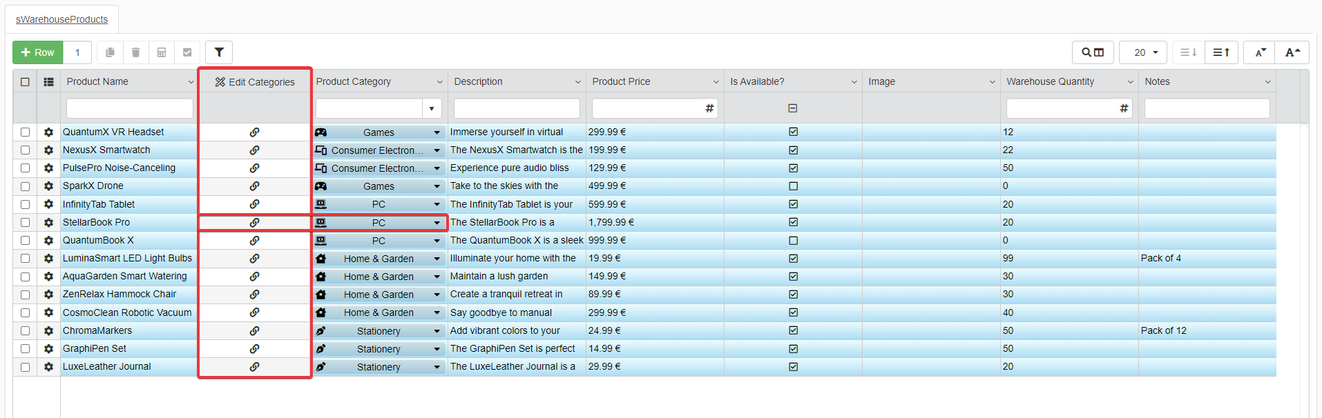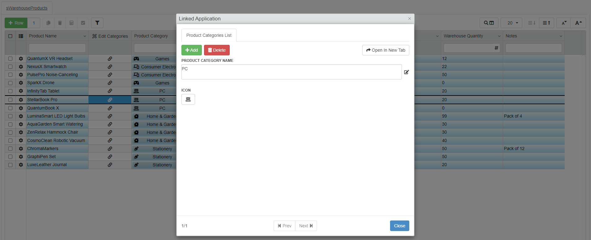In this example, the result is only one: there is only one Product having that Id. The User can edit all its info from the AppLink's window.