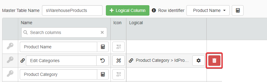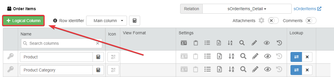 In the table you want to add the AppLink, click on the Add Logical Column button. The action opens the Add Logical Column window. You find Add Logical Column above the table's configuration in both the Master sub-panel and the Detail table sub-panels.