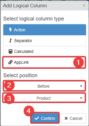 - (2) Choose to position the AppLink column Before\After a specified table field.