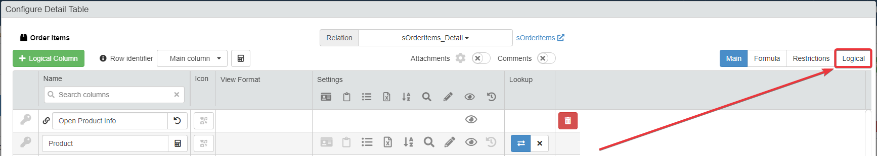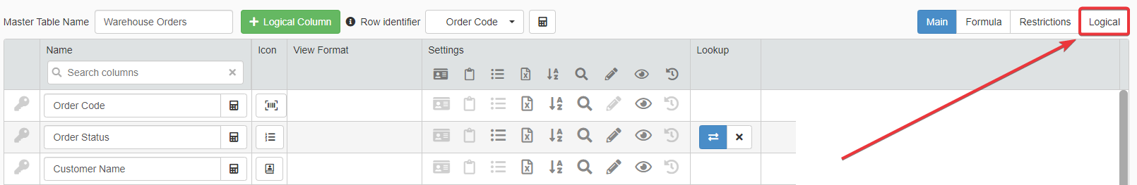 From the chosen table (either Master or Detail Table), go to the Logical sub-panel.