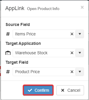 Click on Confirm to save the AppLink's configuration. (If you want to abort the AppLink's changes, click on Cancel instead.)