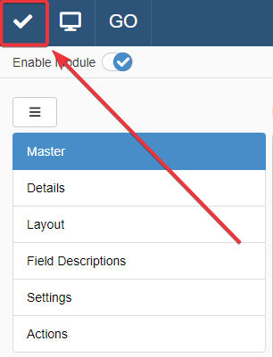 For Master Table, you can find the table settings under the Master sub-panel. The Master sub-panel is the first panel opening by default when you access the Design Mode.