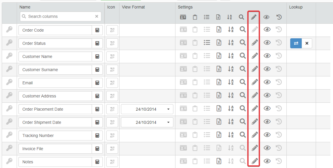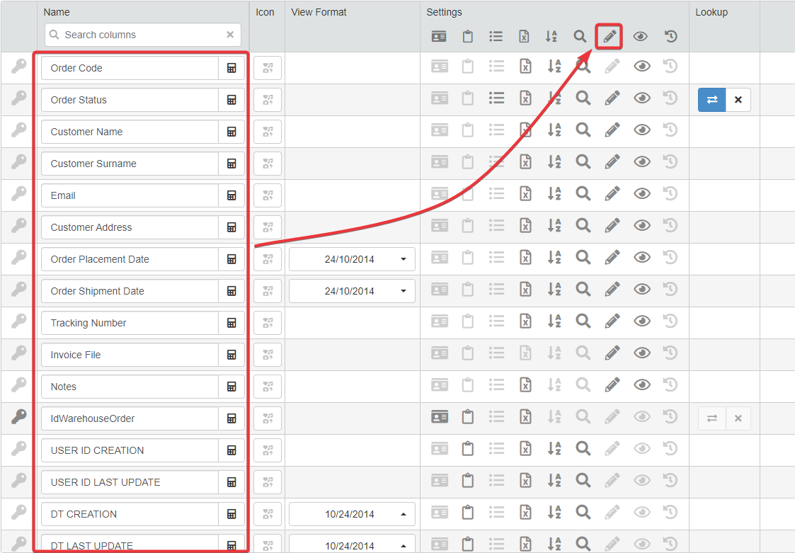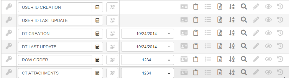 CT ATTACHMENTS,DT CREATION,DT LAST UPDATE,ROW ORDER,USER ID CREATION, andUSER ID LAST UPDATE. A tooltip and the point will inform you if a field is a system field or not.See What Are Storages and Why Do You Need Them? and Hide or Show a Field on the Table for more information about System Fields.