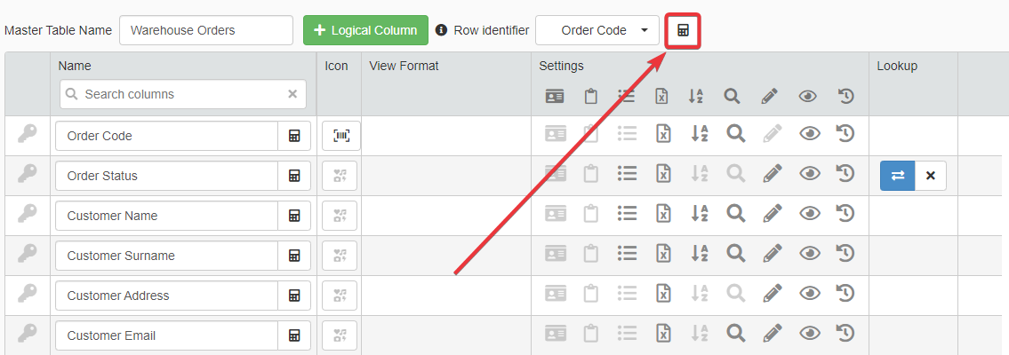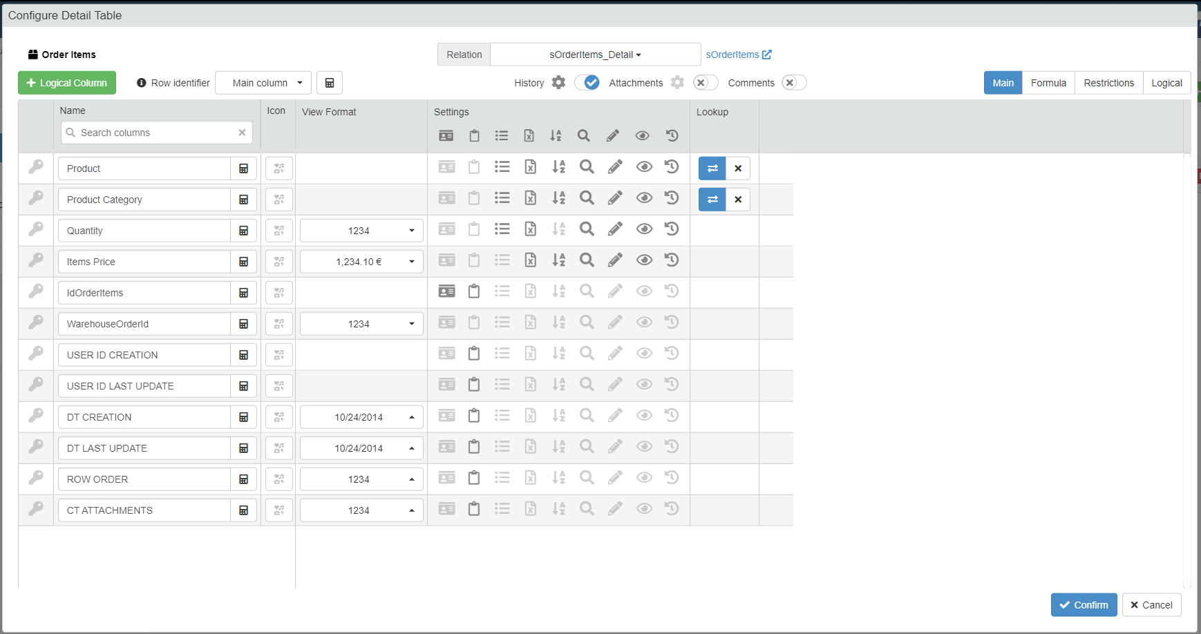 For a Detail Table, you find the same interface by going into Details > [Desired Detail table] > Configure.