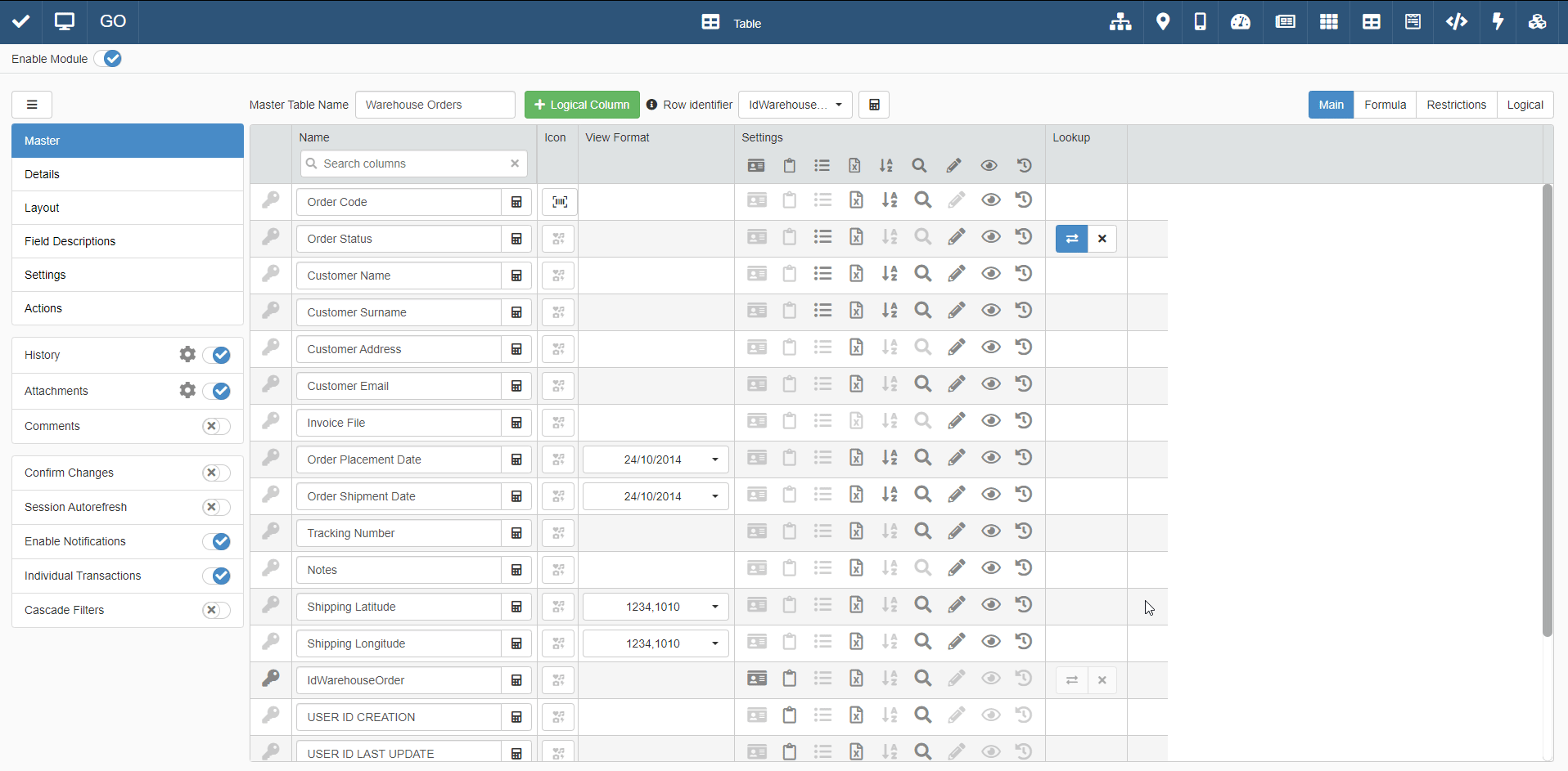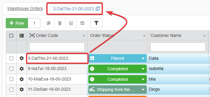 The Designer has created the field Order Code (OrderCode) with a Formula generating a unique alphanumeric code starting from the orders' info.