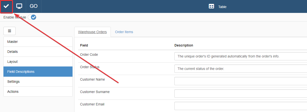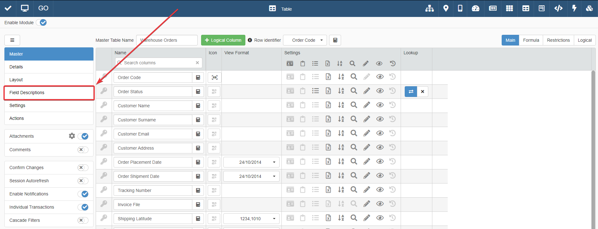 1. In Design Mode in the Table main panel, click on Field Description in the left sidebar.