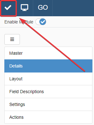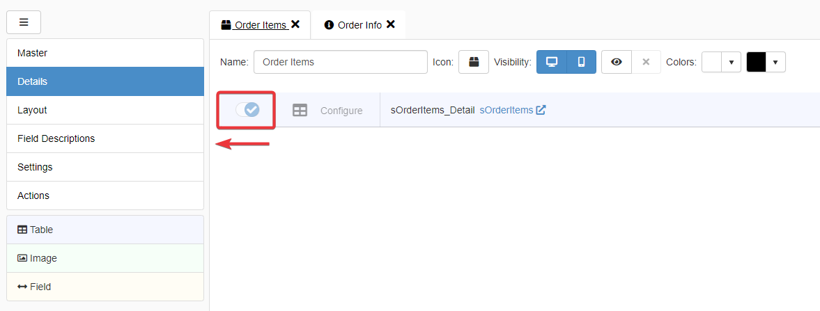Click on the toggle switch to hide (or display if it is turned OFF) the Detail table in the application.