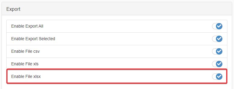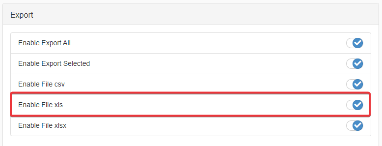 .xlsfile format for the data export.Click on the Enable File xlsx to enable the