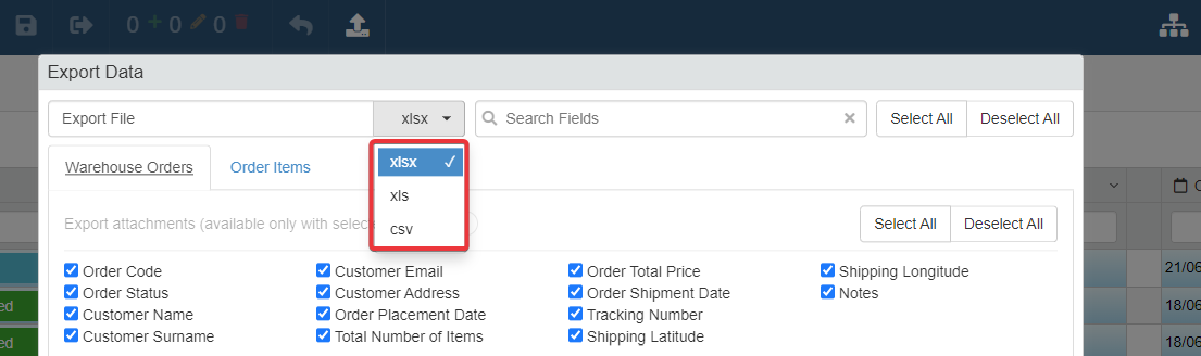 Learn how to enable or disable certain file formats for the data export from the applications.