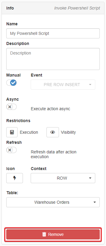 This section explains only how to configure a Powershell Script Custom Action, not the details about how Powershell scripts work in eLegere. For more information about how Powershell scripting works in eLegere, check Powershell Scripts in the Developer Guide.