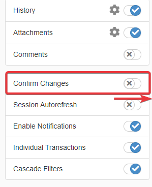 Click on the Confirm Changes toggle-switch to enable or disable the Confirm Changes window in the application.