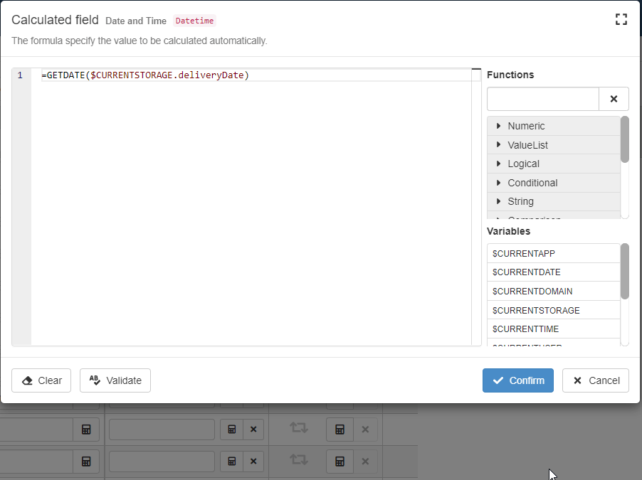 Before clicking on the Confirm button, you can click on Validate button to check your formula's syntax.
