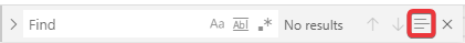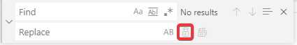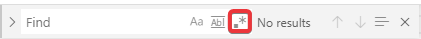 Use Regular Expressions (ALT+R): Insert a pattern of characters for more complex searches. (See More Commands for more info on advanced features.)
