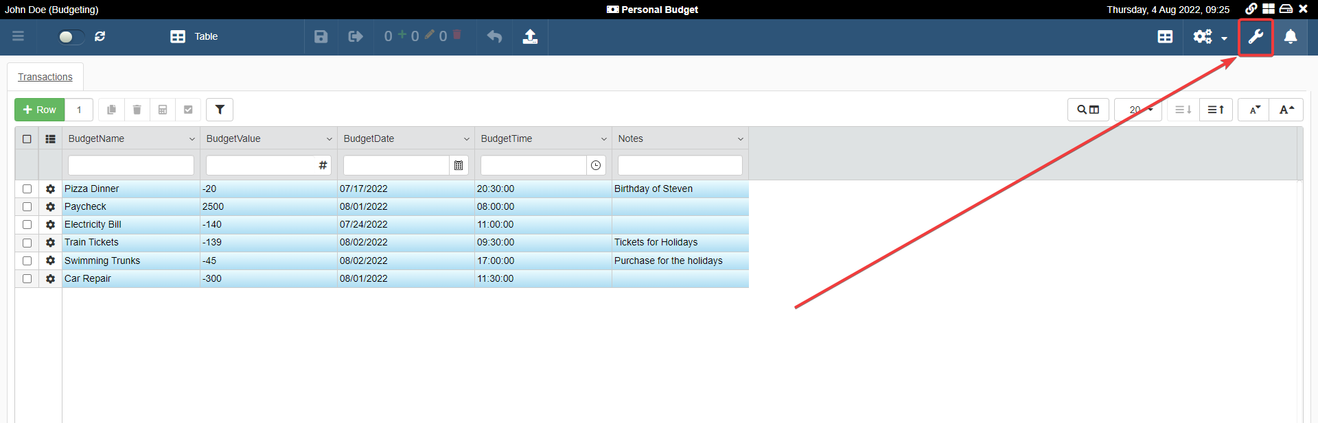 Suppose that Personal Budget must insert the current date in the Date column field automatically.