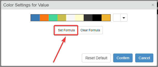 The Color Settings for Value window will appear. Click on the Set Formula button. The actions opens the Formula Editor.