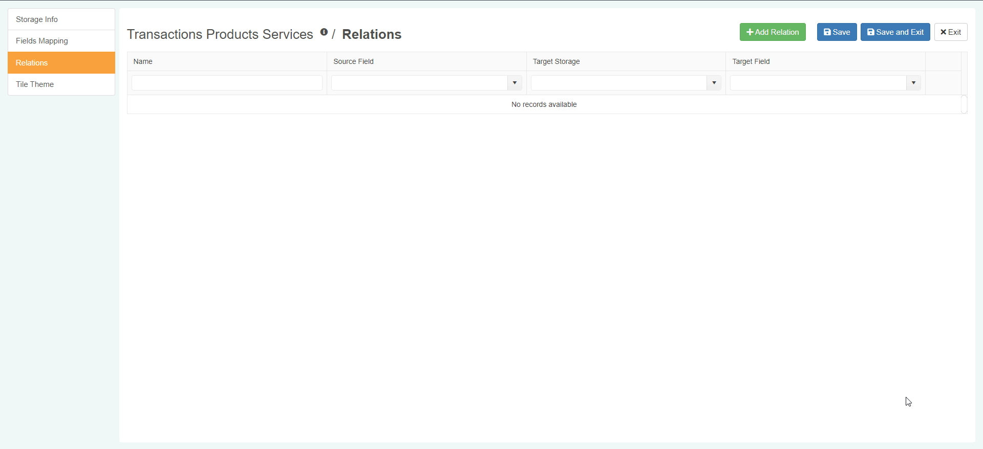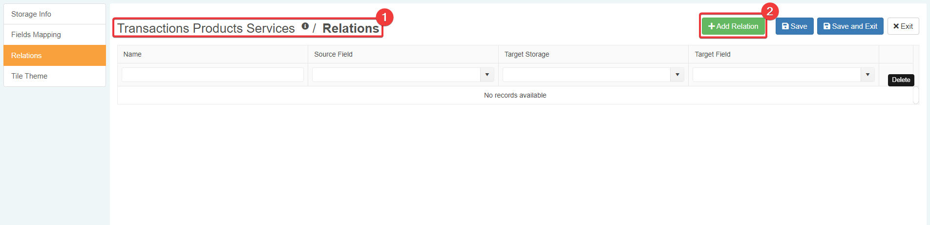 In the Relations sub-panel, create a new Relation and choose Transactions as Storage.