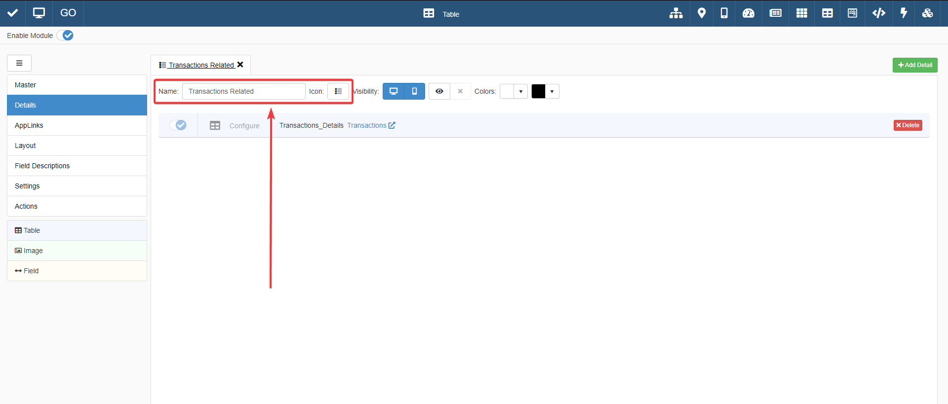 - Type a name for the Detail's tab in the textbox. Call the Detail's tab Transactions Related