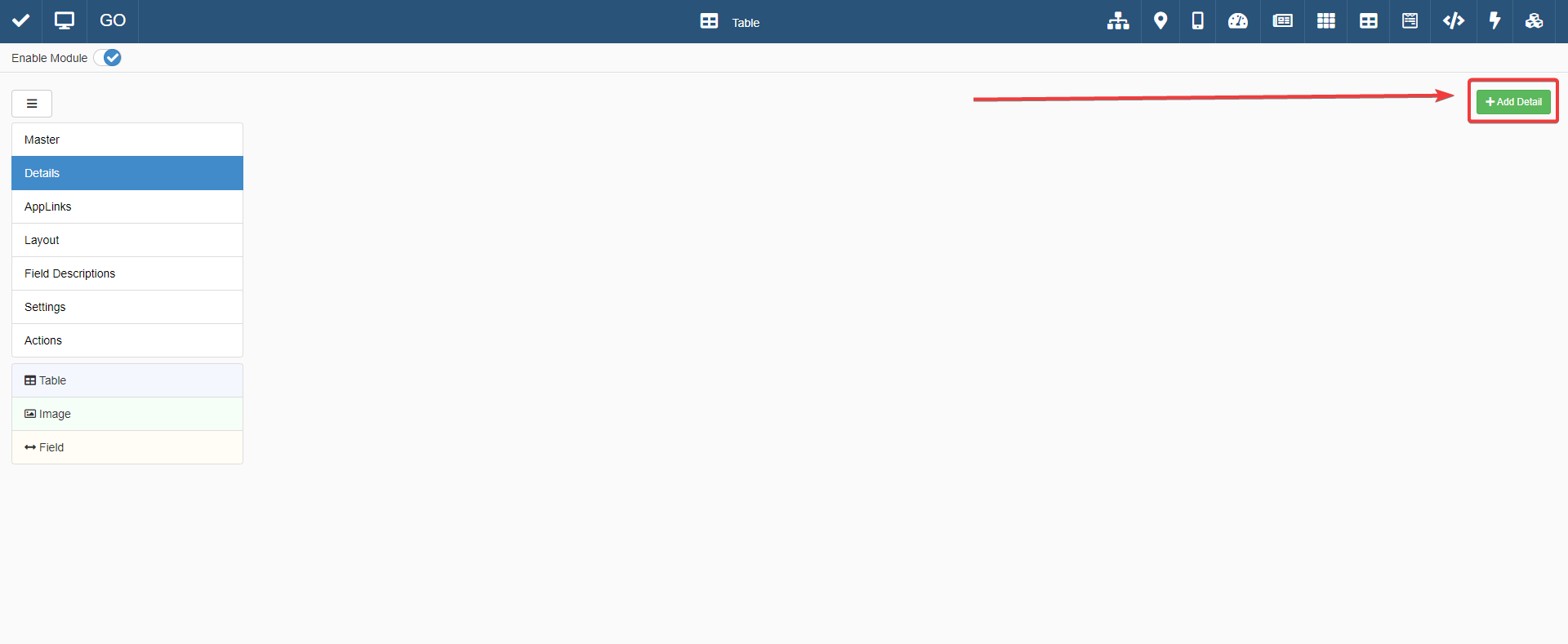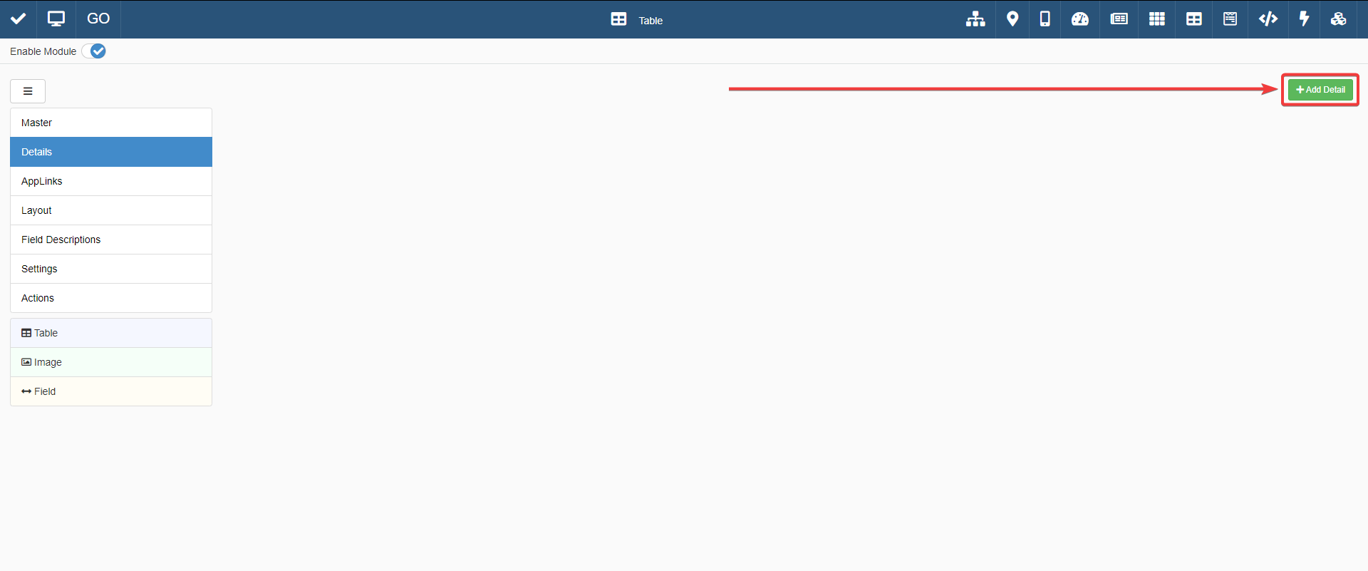 Click on the Add Detail on the upper-right corner of the Details sub-panel.
