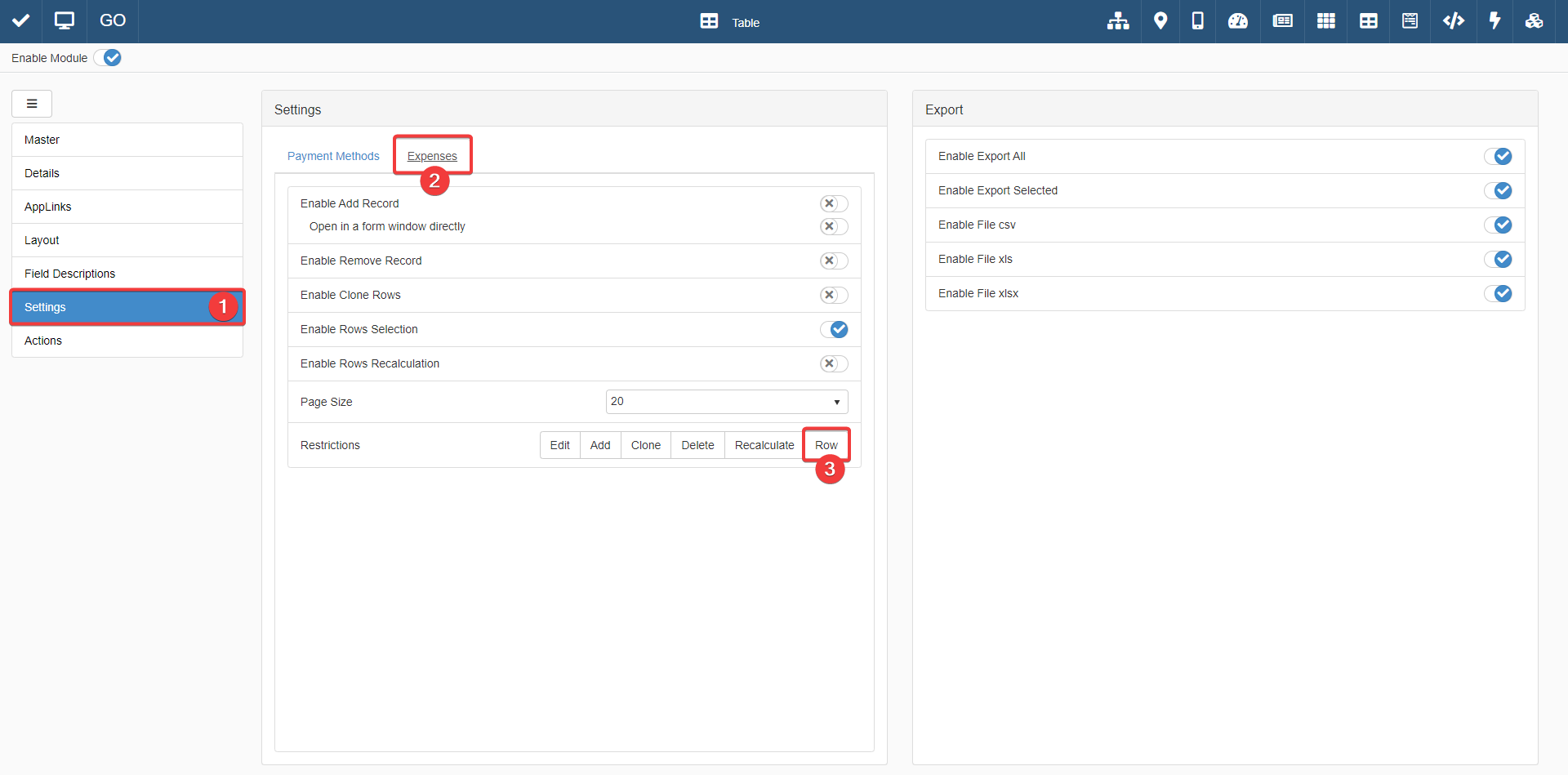 Configuring the Expenses Detail in the Payment Methods Application¶