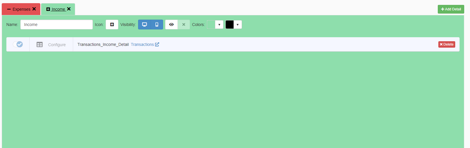 Repeat Step 2 but for the Income Detail tab. Choose a shade of green to distinguish Income from Expenses.