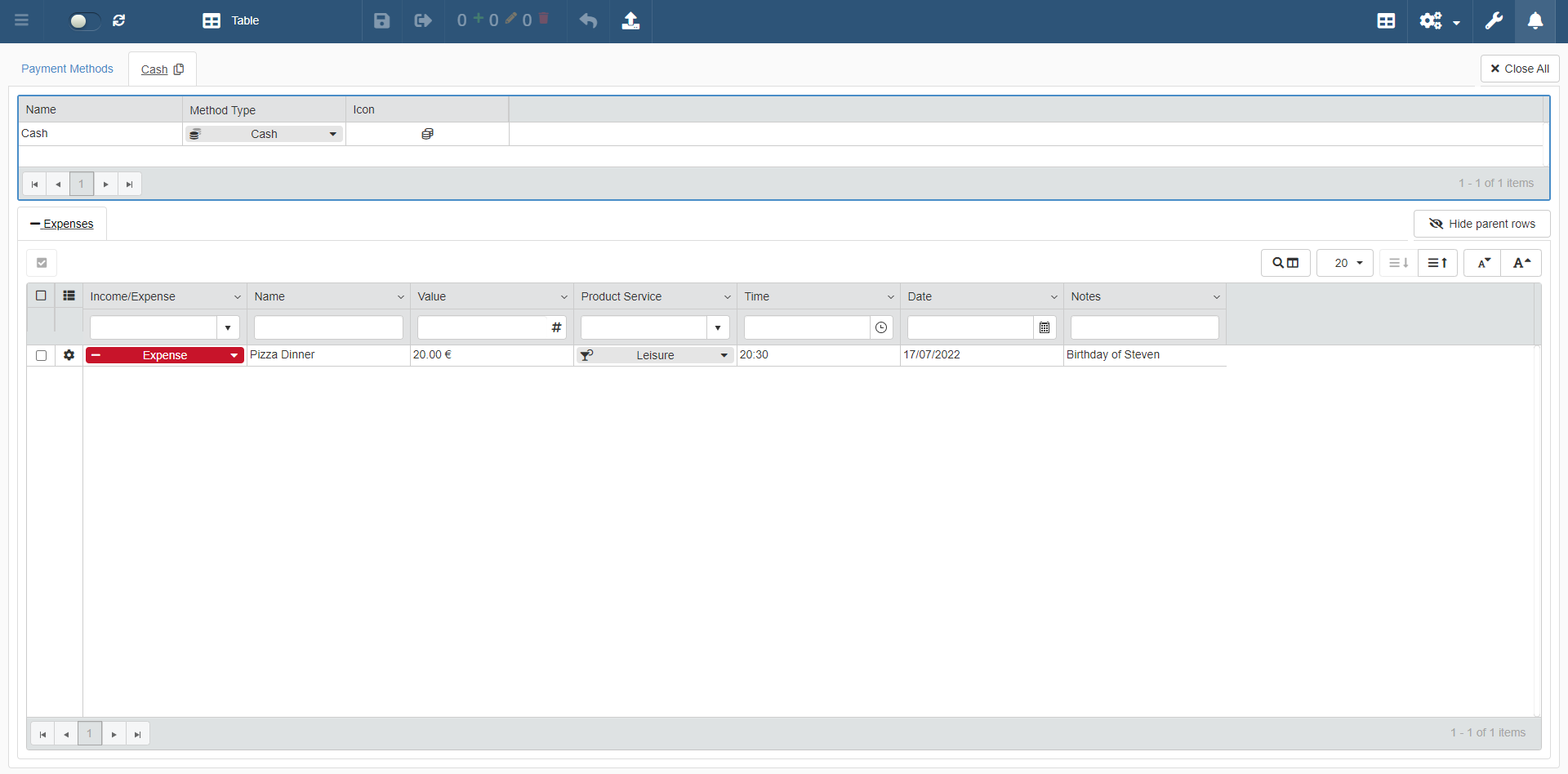 Now, you have associated secondary data from another Storage to the entries of Payment Methods. Each payment method will have a Detail with all the expenses made.