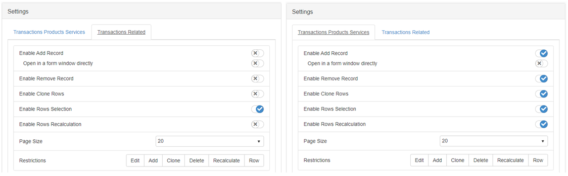 Configuring the Relation as Detail in Transactions Products and Services Application¶